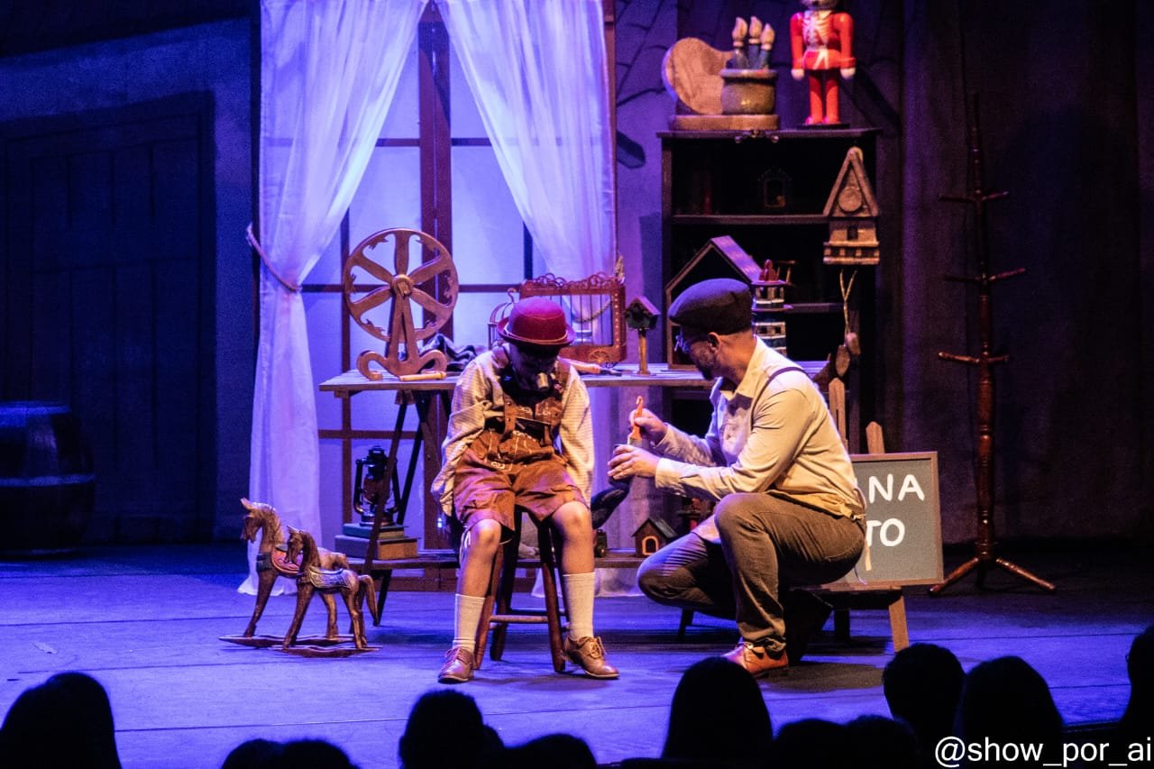 Inspirada nas célebres tirinhas criadas pelo escritor italiano Carlo Collodi em 1883, a peça narra a história de Pinocchio, um boneco de madeira entalhado pelo marceneiro Geppetto, que ganha vida graças à intervenção da Fada Azul. A narrativa explora temas como a verdade, a obediência e o sonho de se tornar um menino de verdade, marcando gerações com a famosa característica do nariz que cresce a cada mentira contada.