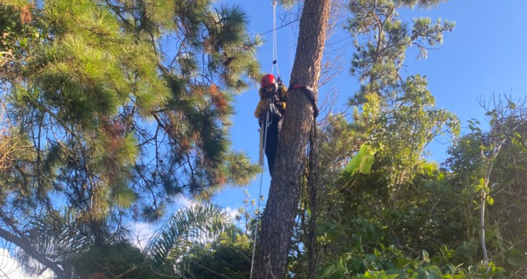A equipe do Corpo de Bombeiros foi acionada às 14h12 de sábado (11) para o resgate de um praticante de parapente que ficou preso em uma árvore na zona rural entre os municípios de Santa Rita do Sapucaí e Cachoeira de Minas.