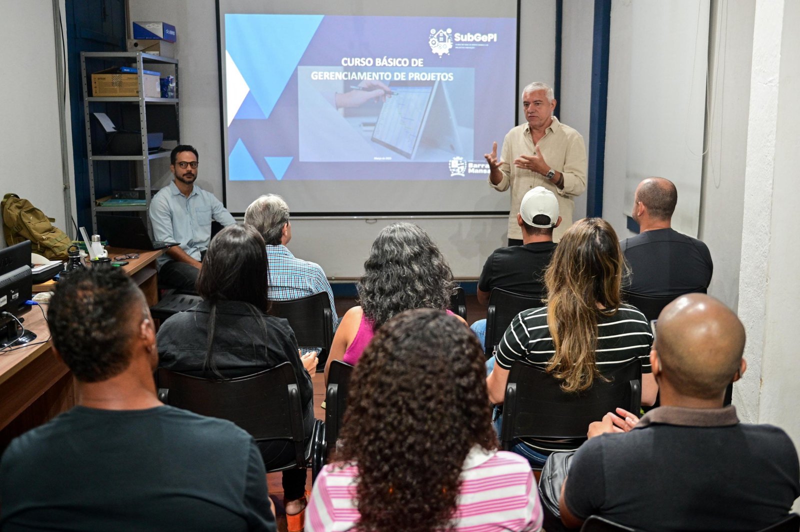 A Secretaria de Administração e Modernização do Serviço Público (SMA), por meio da Subsecretaria de Gerenciamento de Projetos e Inovação (SubGePI), iniciou na manhã desta terça-feira (25), o Curso Básico de Gerenciamento de Projetos. A atividade é destinada aos servidores municipais com o objetivo de promover a capacitação contínua, unificar as metodologias internas e melhorar a produtividade. O curso acontece na Fazenda da Posse, totalizando 20 horas de carga horária. O Centro Universitário de Barra Mansa (Nova UBM) é parceiro na ação.