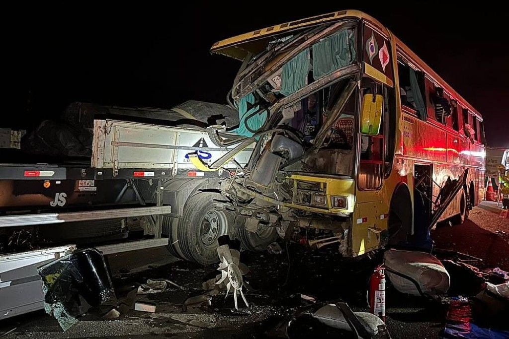 Colisão entre ônibus e carreta deixa feridos na Fernão Dias entre Cambuí e Camanducaia, MG