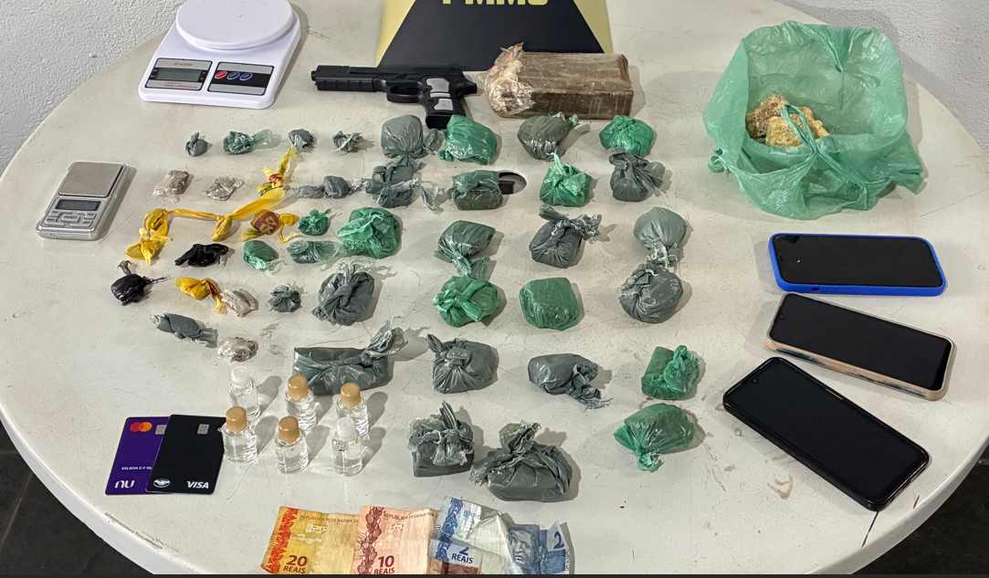 Operação da PM apreende drogas, simulacro e prende suspeito no bairro Trançador, em Caxambu, MG