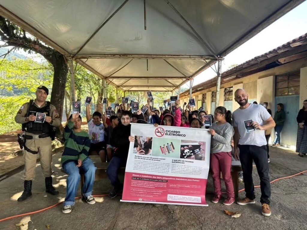 PM realiza ação educativa sobre os riscos do cigarro eletrônico em escola de Passa Vinte, MG