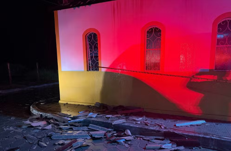No bairro Rocio, a chuva também causou danos à capela de Santa Clara, conhecida como “igrejinha”. O telhado foi parcialmente arrancado e uma trinca foi identificada em uma das paredes, levando à interdição do local por segurança.