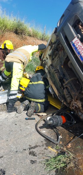 Equipes do Corpo de Bombeiros utilizaram técnicas de salvamento e resgate veicular para remover rapidamente o motorista do interior da cabine. A vítima apresentava escoriações em várias partes do corpo e suspeita de luxação no joelho direito. Em seguida, ele foi conduzido pela Unidade de Resgate do CBMMG ao pronto-socorro local e entregue à equipe médica em condição estável.