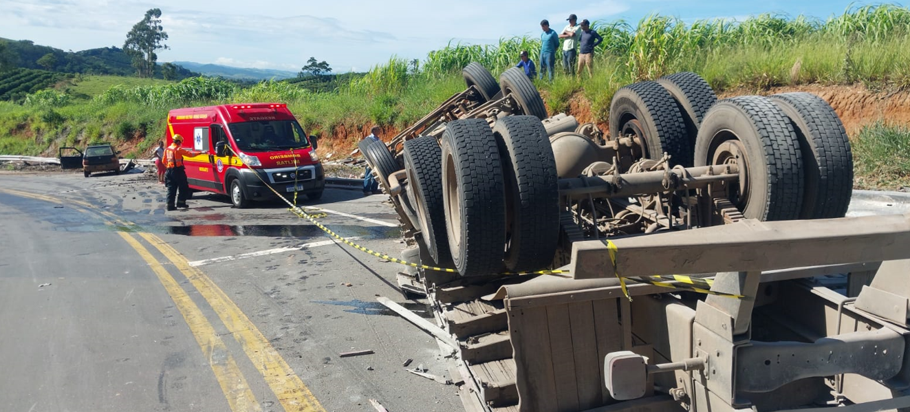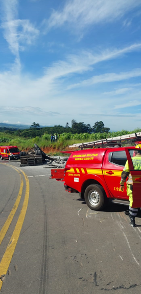 No local do acidente, os bombeiros encontraram uma única vítima, um motorista de 32 anos, consciente e orientada, que estava retida na cabine do veículo. Segundo relato do condutor, ele transportava uma carga de cimento do município de Arcos (MG) com destino a Muzambinho (MG) quando o sistema de freios apresentou falha, fazendo com que perdesse o controle da carreta, que tombou na pista.